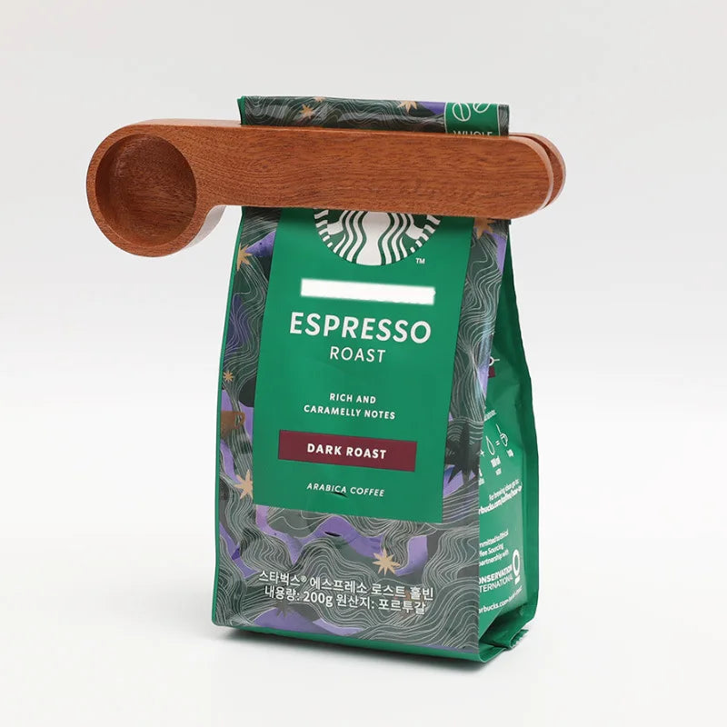 Dual-Use Wooden Measuring Spoon and Sealing Clip